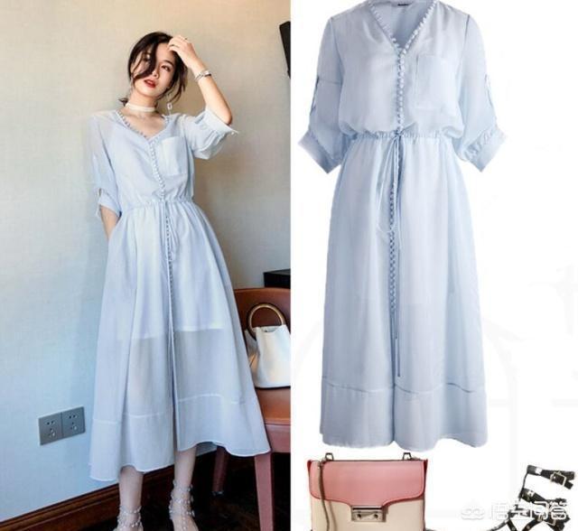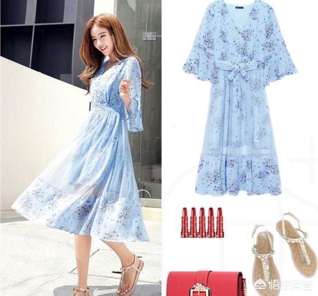 蓝色连衣裙总能带来不一样的甜美,轻薄的雪纺面料穿着清爽舒适,网纱裙摆若隐若现给你更多仙仙的感觉,搭配平底凉鞋,逛街游玩都是很OK的。