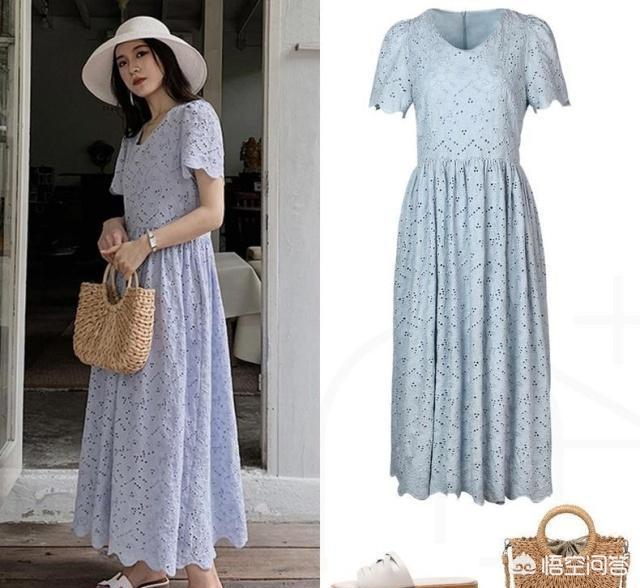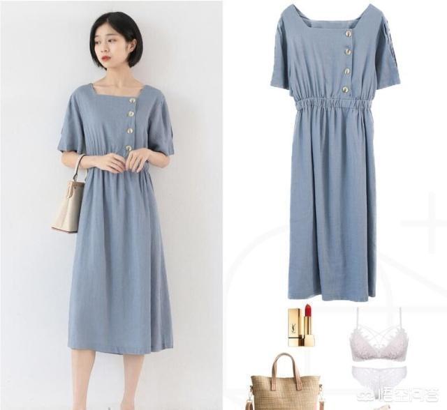方领的设计,相对比圆领来说,更显脖子的修长。高腰加上过膝盖的长度,不管高个还是矮个女生都能穿。大大的袖子,还可以遮盖肉肉的手臂。鞋包等配饰方面选择浅色系更佳。