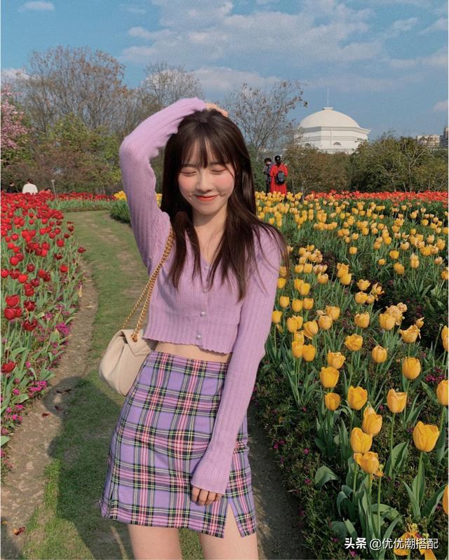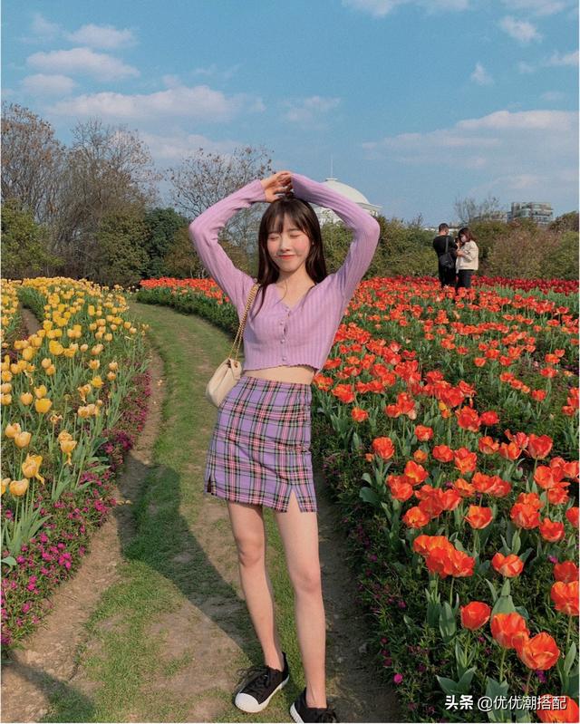 对于小个子女生来讲,长裙可能会压身高,所以选择短裙更适合。而且夏天穿短裙,非常应景,秀出白皙的大长腿,性感迷人更有女人味。今天跟大家分享这组穿搭适合当下季节的搭配造型。短款针织衫搭配格纹包臀短裙,脚踩黑色帆布鞋,充满春夏的气息,活力十足。
