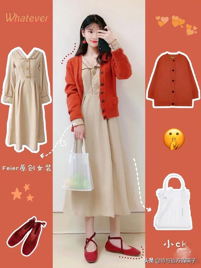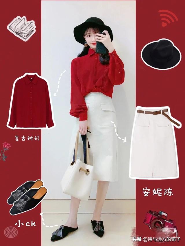 这时候背一个复古颜色的红色小包包,是整体显得更加好看。