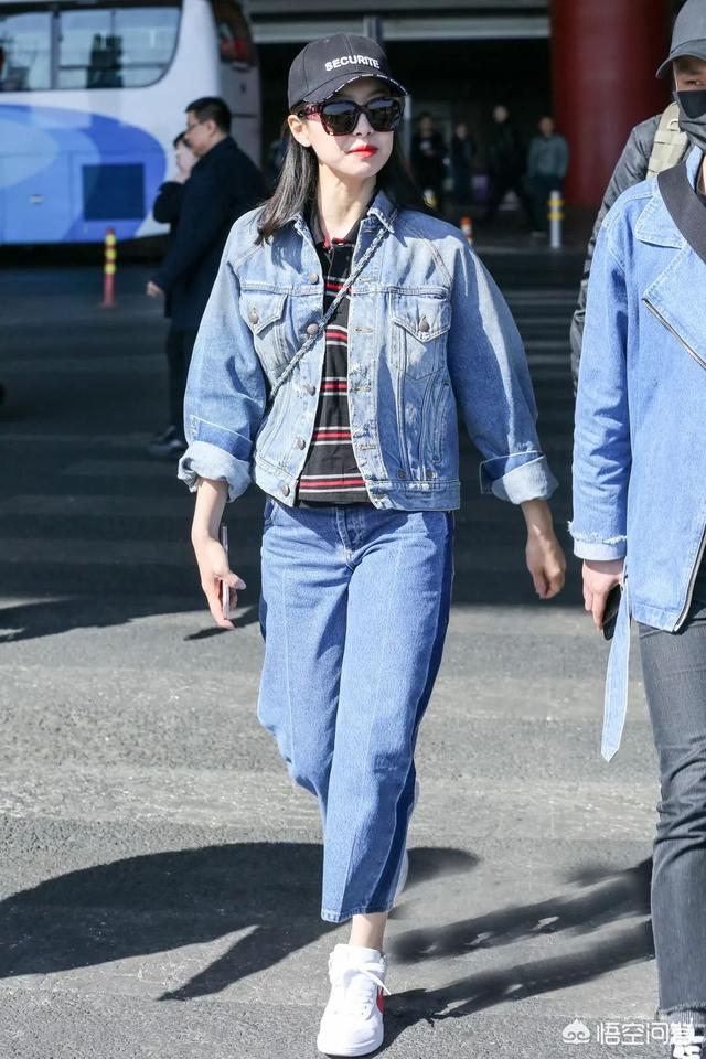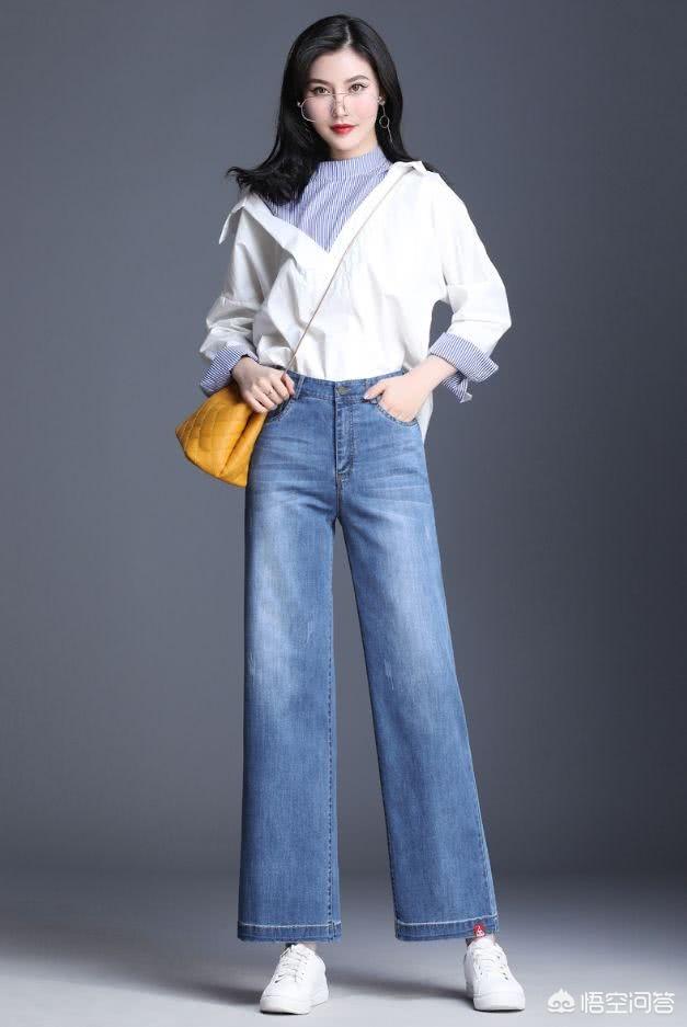 阔腿牛仔裤怎么搭配搭配什么上衣好看?1、上衣+牛仔阔腿裤+中短款小西装外套。