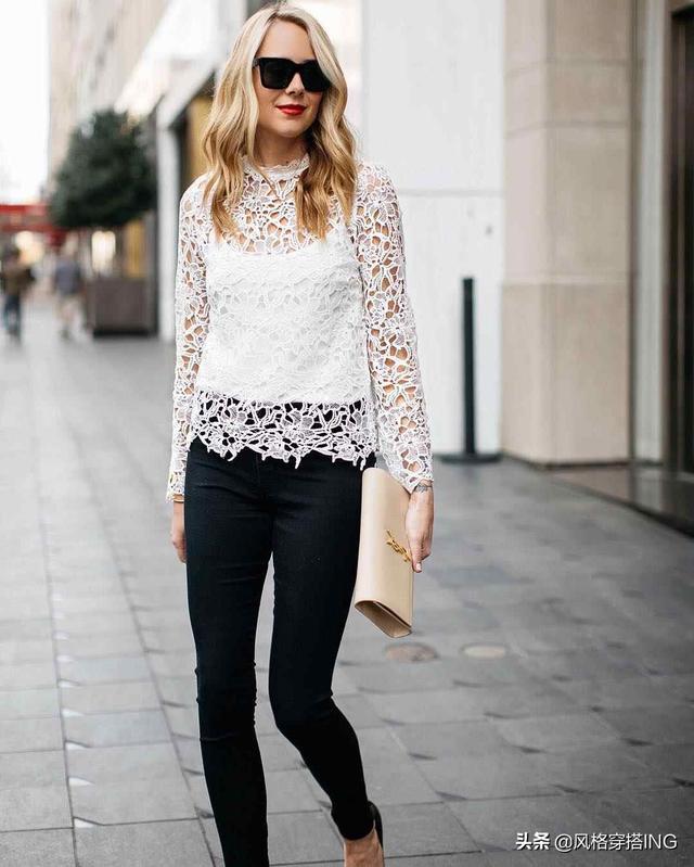 除了以上很透的上衣,对于微透上衣就可以直接单穿搭配下装,但是微透上衣内衣必须穿同色系颜色,不然会显得很廉价没质感,如图微透上衣搭配半裙,很有职场女性的行头,图二也是半透上衣,搭配破洞牛仔裤与高跟鞋,干净利落有气质.