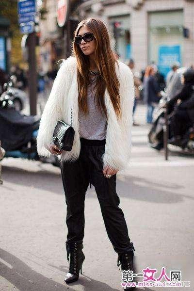一、短皮草配宽松长裤。在很多人看来,皮草显臃肿,宽松长裤也显臃肿,两者搭配在一起就更加臃肿。我的看法是,只要穿着的人身高不矮(个子不高的还有高跟鞋嘛),都可以尝试。