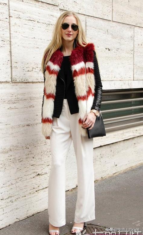 (这是皮草背心,不管是鲜艳色泽的搭配还是深色系,看起来都不违和)