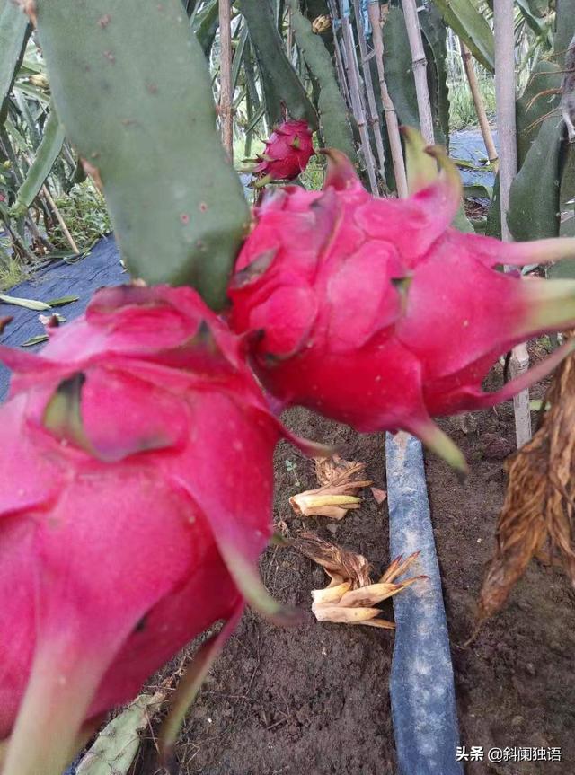 我家是徐州的,就种了两个大棚的火龙果,一个棚十亩,正在建第三第四个棚,也是十亩一个,目前火龙果市场非常好,我家是红心的台湾软枝大红和金都一号,果大肉甜,销量好,主营进园采摘项目,十五元一斤,家长会带着小朋友来采摘,一个果一斤左右,最大的能达到一斤六两,果园容易打理,火龙果和仙人掌的属性差不多,见土就活,不需要额外浇水,只要肥料跟得上,一年能结四五茬果子,从六月一直结到十一月底,果期长达半年,除了果子能出售盈利,果苗也是一笔不小的收入,火龙果的果树会发芽长出很多叉枝,需要减掉,不然会导致整颗果树营养不良,这些叉枝就是很好的培育苗,随便扔地上,半个月就可以生根发芽,我家卖的不贵,三四块,四五块钱一棵,一年也能卖一两万块钱。当然种地也是很累的,要搭架子,要除草,天冷了还要每天早晚都要上保温毡毯,连阴雨天要防水,春天要去枝,要打掉多余的花骨朵,结了果子还要防贼,产量高了还要四处联系旅行社来采摘,总之生活不易,种地更不易~~不过看到红彤彤的果子变成红彤彤的百元大钞还是挺开心的,加油~