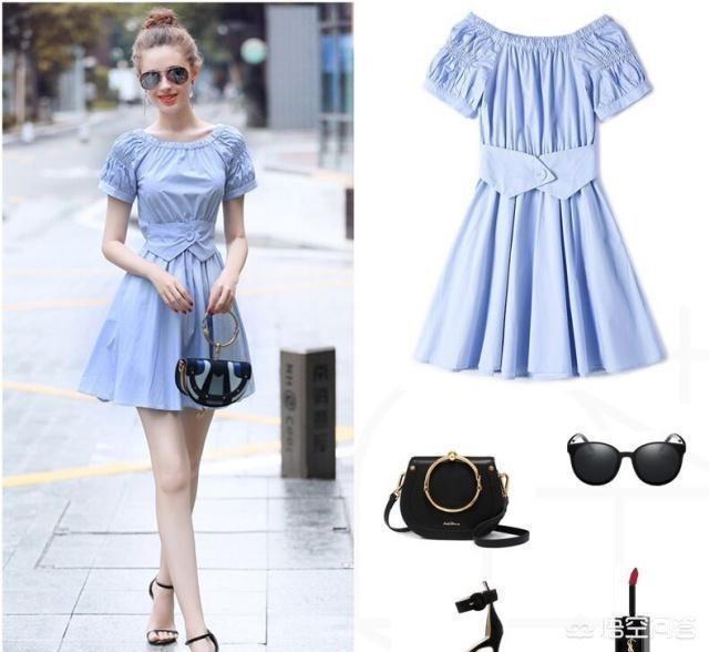 非常显身材的一款蓝色连衣裙,优质的面料柔软舒适,一字肩的点缀,显得格外优雅,简约短袖,修饰手臂线条,收腰显瘦的截剪工艺,拉长腿部线条,配上凉鞋,更显高挑气质。